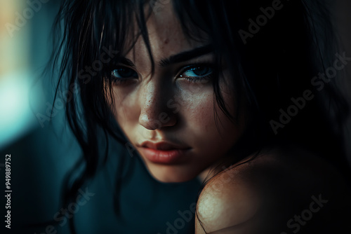 An emotional depiction of a woman in a state of depression, emphasizing feelings of sadness, loneliness, and despair