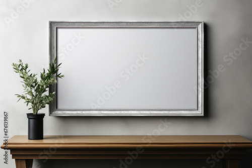 An empty picture frame on a wall, demonstrating the potential for displaying various artworks or photos. Generative Ai.