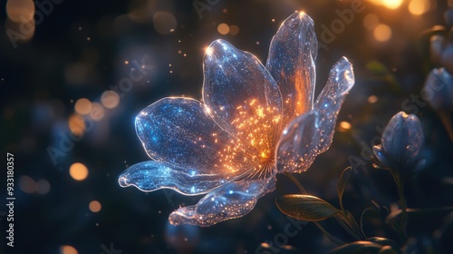 An enchanting flower with luminescent details, glowing against a shadowy backdrop, creating a magical scene.