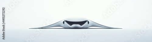 An enigmatic manta ray, emitting mist, appears under a white sky, combining hyperrealism and ancient mysticism in a frontal view