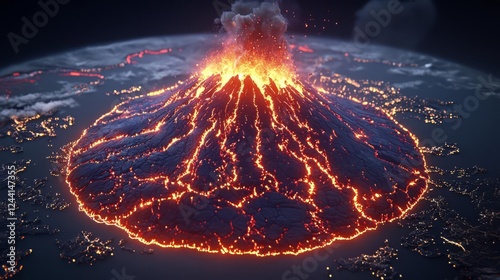 An erupting volcano showcasing powerful lava and smoke emissions.