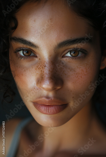 woman, portrait, beauty, aethereal, eye, freckle, curly, hair, captivating, soft, frame, face, young, natural, expression, intense, gaze, delicate, charme, evocative, warm, serene, feminine, gentle, individuality, textured, skin, authentic, depth, innocence, thoughtful, reflective, elegance, simplicity, uniqueness, emotional, quiet, introspective, pensive, contemplative, relaxed, mysterious, dignified, identity, allure, sensitivity, presence