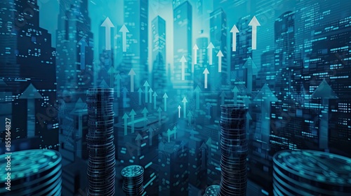 stack, coin, financial, graph, arrow, abstract, city landscape, background, stock, market, growth, business, success, prosperity, economy, investment, finance, wealth, concept, chart, symbol, symbolize, increase, profit, earning, strategy, analysis, dynamic, planning, progress
