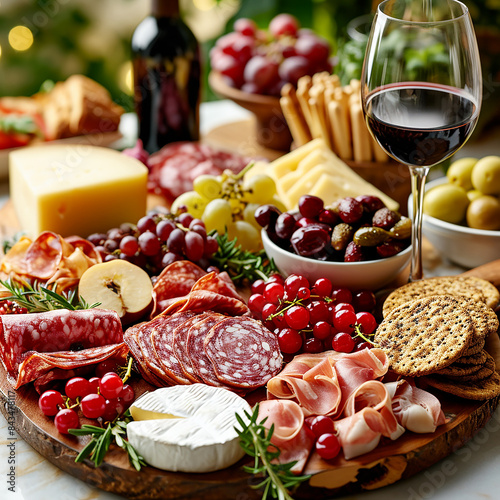 wine, cheese, epicure, fruit, food, board, snack, background, meat, party, charcuterie, prosciutto, bread, salami, brie, white, cracker, table, assortment, italian, deli, glasses, ham, plate, camembert, wooden, meal, platter, fig, olive, variety, dinner, eating, fresh, cracker, red, antipasto, topview, nut, healthy, sausage, tapas, grape, drink, olive, antipasto, french, ai