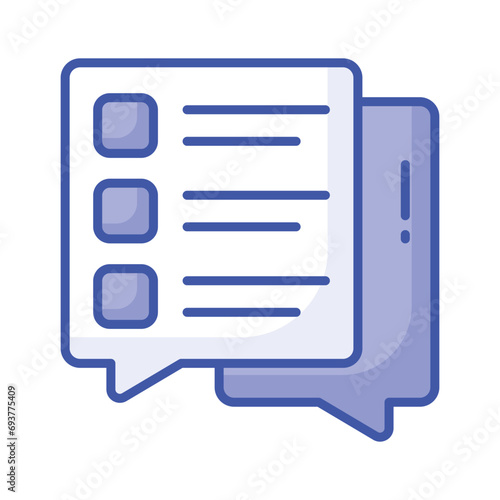 digital, checklist, chat, bubble, conversation, communication, online, questionnaire, message, answer, sheet, business, commerce, e-business, survey, icon, vector, illustration, blue, line, outline, filled, coloured, colours