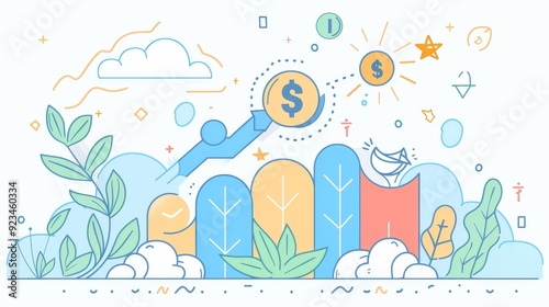 business, growth, financial, success, profit, revenue, investment, earning, income, increase, upward, trend, line, dollar, signs, star, cloud, prosperity, abundance, wealth, opportunity, strategy, development, progress, achievement, goal, target, ambition, vision, motivation, inspiration, leadership, teamwork, collaboration, innovation, creativity, solution, future, potential, optimism, positive, concept, illustration, graphic, design, abstract