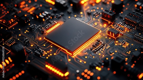 An illustration of a circuit board background emphasizes texture and design, showcasing the complexity and aesthetics of technological components.