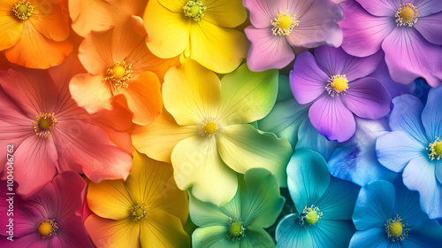 An illustration of vibrant rainbow-colored flowers, symbolizing LGBTQ pride and diversity. Each flower represents unique identities and the beauty of love and acceptance flourishing together.