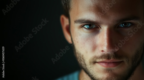 closeup, portrait, dreamy, youthful, photogenic, eye, young, intense, photo, stunning, high-coloured, blue, eyesight, face, gaze, mesmerizing, captivating, artistic, beauty, emotion, facial, light, individual, charming, dark, contrast, dude, dramatic, attractive, modern, detailed, character, contemplative, emotionally, sharpened, expression, introspection, stubble field, serious, mood, depth, model, sophisticated, style, hair, natural