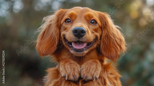 An Irish setter's gentle gaze, framed by soft light, evokes warmth and loyalty.