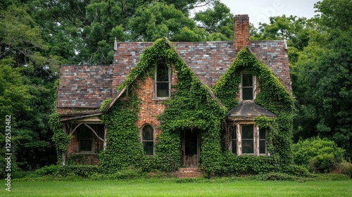 An old brick house covered in ivy vines, creating a fairy-tale look