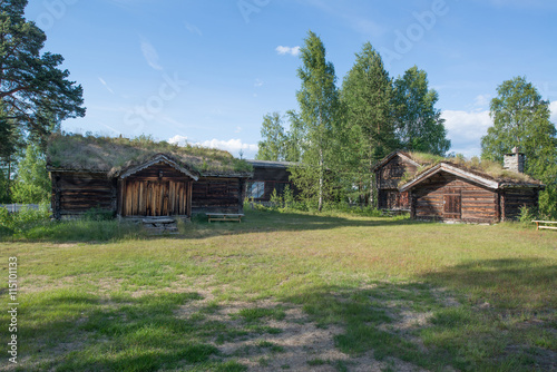 An old historic houses with grassroofs in Elverum, Norway