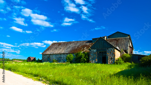 latvia, eu, old building, old house, road, stone building, stone house, house, farm, old, barn, landscape, building, sky, rural, grass, country, field, abandoned, green, cloud, architecture, nature, countryside, agriculture, home, blue, summer, hut, village, wooden, farmhouse