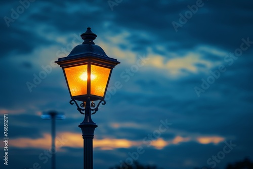 lamp, light, twilight, dusk, evening, glow, warm, sky, nostalgia, solitude, urban, street, illumination, classic, peaceful, calm, atmosphere, nostalgic, night, city, tranquil, serene, lighting, old style, vintage, traditional, ambience, comfort, cosy, city life, street light, amber, safety
