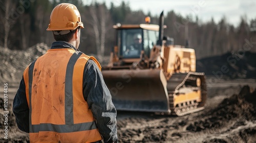 An operator controlling a bulldozer on a construction site.