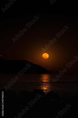 moon, night, sea, full moon, crimea, orange, disc, yellow, black sea, coast, summer, water, salt water, glare, beach, shore, dark, scenic, travel, nature, landscape