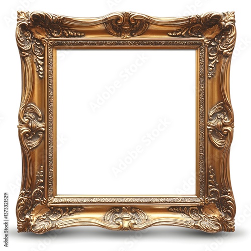 An ornate gold picture frame with elaborate baroque detailing provides a classic elegant setting for artwork or photography.