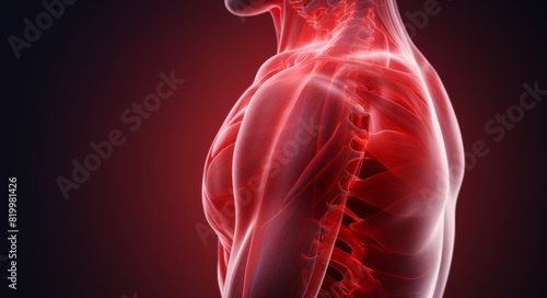 An x ray of the shoulder area with a highlighted part showing pain with dark background
