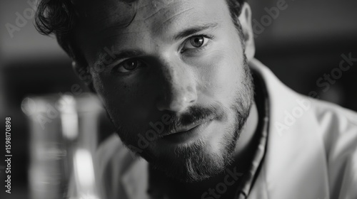 Analyzing experiment results laboratory portrait professional setting close-up scientific inquiry