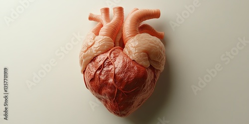 Anatomical heart model showcasing intricate details for educational purposes in a studio setting