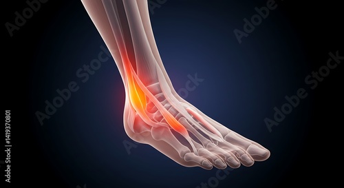 foot, anatomy, illustration, bone, pain, red, yellow, medicals, health, body, human, skeleton, joint, ankle, toe, tendon, ligament, muscle, injury, inflammation, ache, discomfort, soreness, fibula, shinbone, metatarsal, arch, heel, sole, dorsal, chiropody