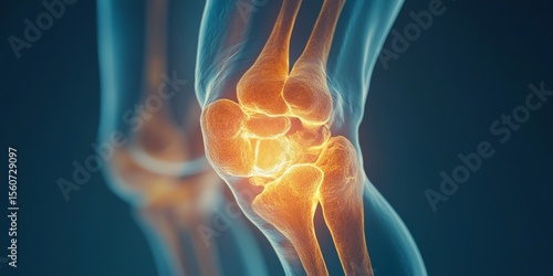 Anatomical Illustration of Human Knee Joint Highlighting Bone Structure and Inflammation Details