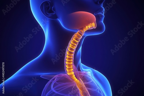 anatomy, throat, spinal column, health care, education, biology, graphic design, bod, structure, visualisation, health, organ, larynx, esophagus, spine, neck, science, medicals, chest, digital artwork, depiction, colours
