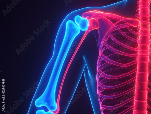 Anatomical study of the human shoulder joint medical illustration digital art vibrant colors close-up view health concept