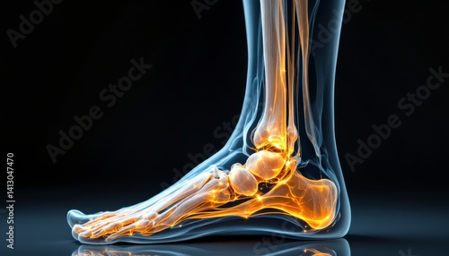 Anatomical x-ray of a human foot and ankle medical illustration studio environment detailed view health concept