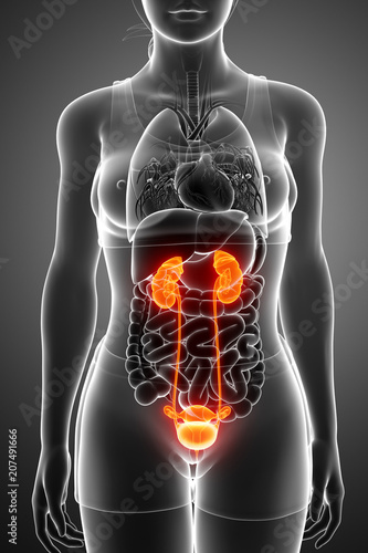 female, anatomy, bladder, abdomen, biology, blood flow, blue, colon, front view, illustration, orange color, people, photo, shape, stomach, three-dimensional, torso, urine, vertical