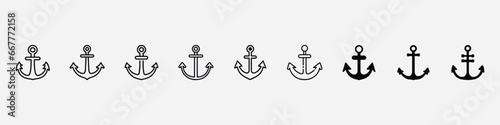 Anchor icon set. Anchor symbol logo. Anchor marine icon. Anchor icon, Anchor vector icon logo boat symbol pirate helm Nautical maritime, Anchor, maritime outline icon set.