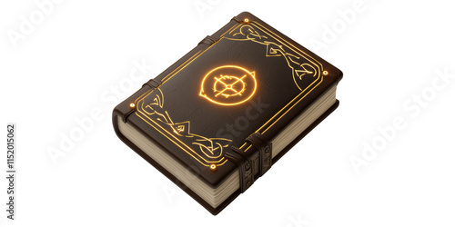 book, leather, ancient, glowing, symbol, magic, page, cover, vintage, isolated, background, transparent, mystical, hardcover, manuscript, literature, old, antique, tome, emblem, ornament, library, artifact, mysterious, fantasy, three-dimensional, icon