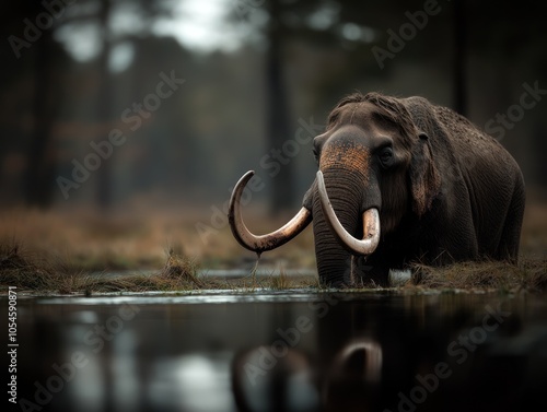 Ancient mammoth: A striking portrait of a mammoth, highlighting its immense size and fur-covered body, offering a glimpse into the past and the impressive characteristics of this ancient species.