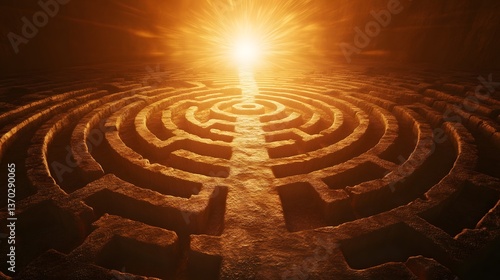 labyrinth, labyrinth, path, light, sun, journey, quest, adventure, mystery, puzzle, challenge, solution, escape, hope, future, success, ancient, stone, dark, tunnel, center, entrance, exit, finding, way, direction, illuminated, gold, brown, terracotta, design, pattern, architecture, geometry, symbolism, mythology, fantasy, illustration, digital, three-dimensional, graphic, art, photographic, image, background, concept