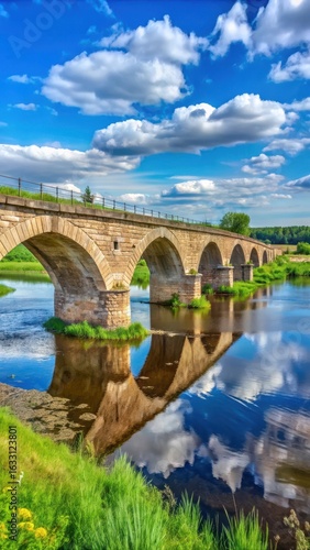 Ancient stone bridge over Kama River in rural Udmurtia region