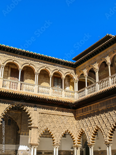 andalusia, palace, with, seville, patio, weary, ornament, arabic, seville, scrollwork, motif, motif, fitness, moorish, arch, column, majestic, architecture, fortified, spain, europa, tour tourism, touristy, andalusian, andalusian, south, spanish, spanish, mediterranean sea, european, sun, view, photo, photograph