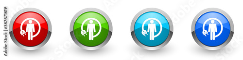 Android charging wire silver metallic glossy icons, humanoid robot concept set of modern design buttons for web, internet and mobile applications in four colors options isolated on white background