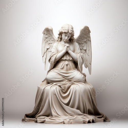 photorealistic, representation, single object, stone carving, architecture, spirituality, full-length, studio shot, creativity, archangel, sculpture, isolated, historical building, history, natural, sorrowful, sitting, wedding, female, mature, person, statue, adult, angel, bride, craft, fairy, human, light, photo, white, woman, image, wing, art