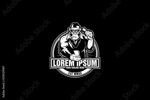 Angry Gorilla with fedora hat and suit cartoon character logo