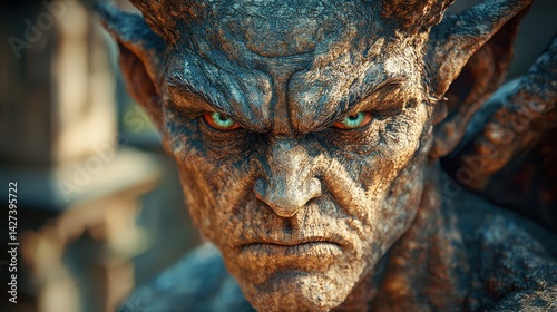 Angry stone creature face close-up