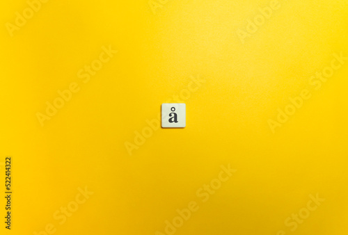 Angstrom Diacritical Mark on Letter Tile on Yellow Background. Minimal Aesthetics.
