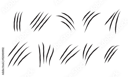 animal Claw scratches mark set. Cat tiger scratches paw shape. Intricate claw silhouettes, Cracks form animal claw scratches, wild beast paw marks with sharp fissures texture,