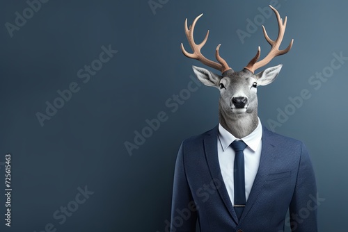 cervid, hipster, businessman, costume, wear, standing, fashion, background, cheerful, cute, friendship, front, looking, portrait, posing, sitting, small, white, friendly, animal, pet, business, career, office, manager, boss, suit, formal, corporate, workplace, studio, plain, colours, wall, humor, funny, canino, professional, attire, work, pretend, stylish, contemporary, anthropomorphism, creative, playful, quirky