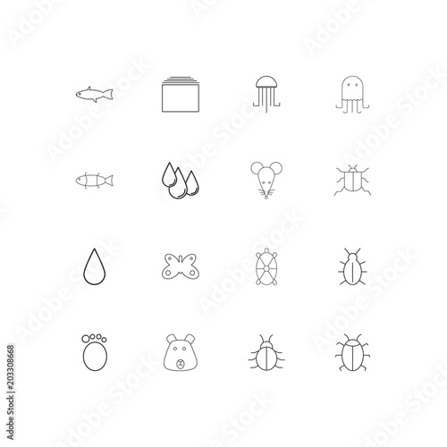 drop, fish, bug, jellyfish, bear, water, dripped, octopus, mouse, tab, turtle, butterfly, icon, vector, illustration, set, pictogram, symbol, signs, design, art