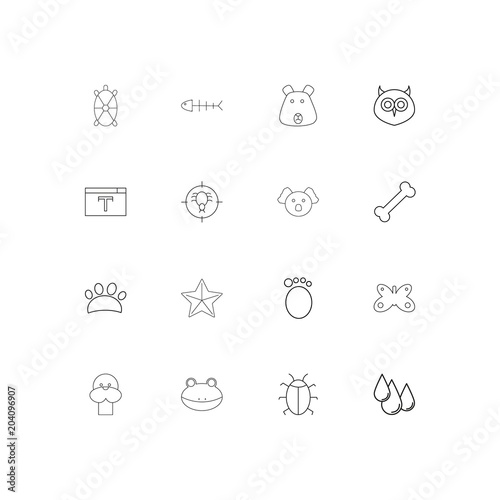 seal, bug, bone, drop, butterfly, ape, koala, frog, turtle, bear, starfish, browser, target, owl, icon, vector, illustration, set, pictogram, symbol, signs, design, art