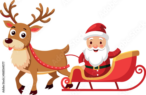 Animated Santa Claus on a sleigh with a reindeer for Christmas holiday celebration