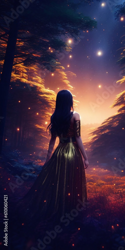 nature wallpaper, backview, shiny, anime, silhouette, hair, face, fairy, light, star, bright, illustration, design, vector, woman, fashion, dress, beauty, model, dark, lady, fantasy, glamour, night, person, art, style, red, bride