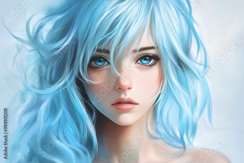 anime, girl, blue, hair, eye, digital artwork, illustration, portrait, face, fantasy, cute, beautiful, young, woman, character, art, style, manga, cartoon, drawing, graphic, design, artwork, digital illustration, digital artwork, blue eye