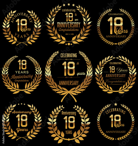 Anniversary golden laurel wreath design, 18 years