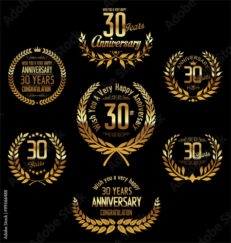 30, anniversary, birthday, laurel, retro, chaplet, celebrate, celebrate, celebration, congratulation, emblem, happy, jubilee, marriage, signs, symbol, vintage, wedding, year, badge, banner, card, ceremony, classic, decoration, graduation, happiness, icon, illustration, letter, mark, memorial, old, party, ribbon, rosette, seal, th